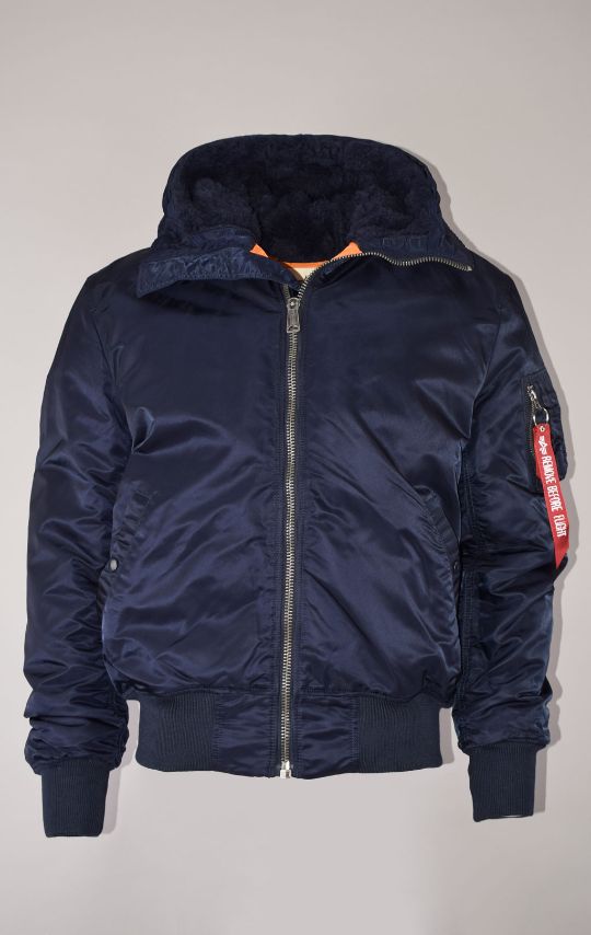 Alpha не останавливается на консервативной классике типа MA-1 и создаёт бомберы с меховыми воротниками, капюшонами и увеличенным слоем утеплителя, которые с комфортом можно носить в межсезонье и даже лёгкий мороз.